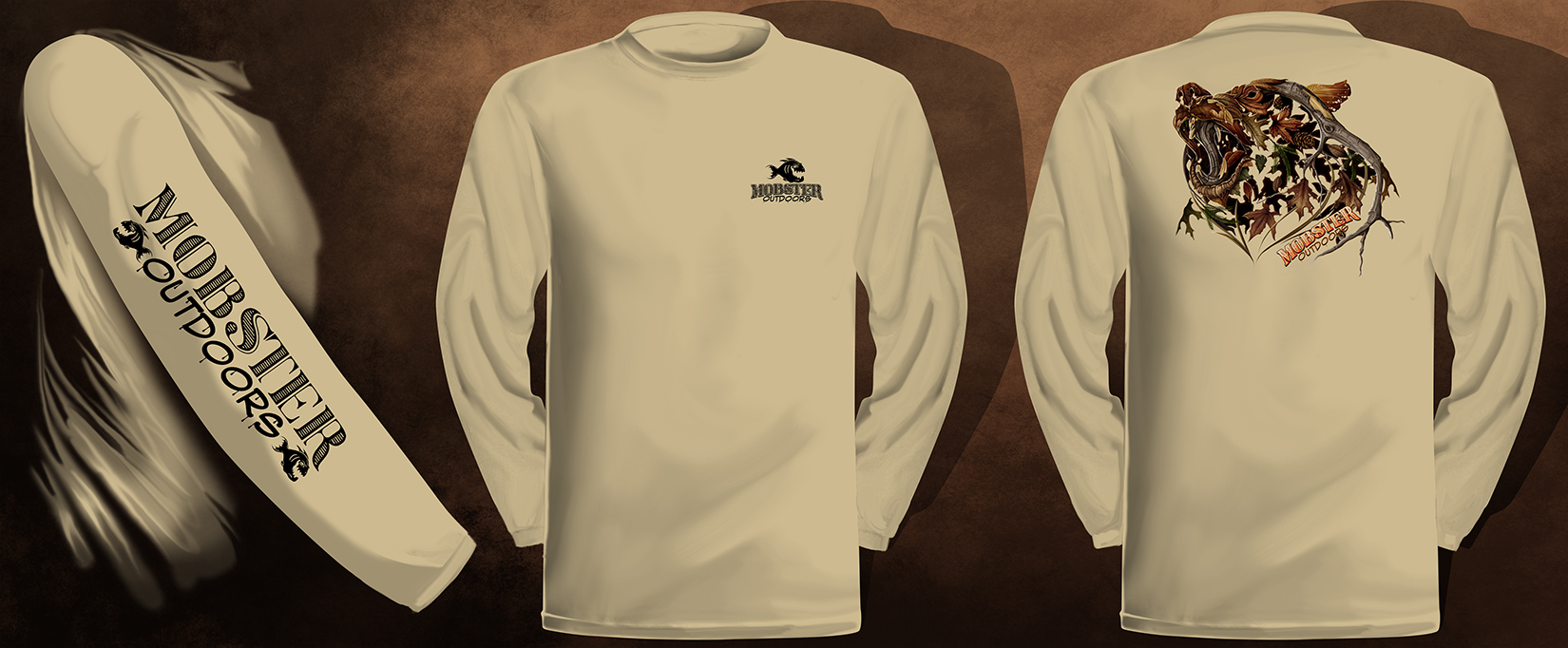 Mobster Outdoors Grizzly Bear long-sleeve quick dry UV protectant shirts. Features ProtectUV (r) for UPF 50+ Mega Solar protection with WIKZ (r) moisture wicking and ZYPTRON (r) stain release. Double Needle Tailoring. Shirt may have Saltwater Mafia or the Mobster Fish on the front chest. Sizes S-3XL. $2 more for 2 & 3 XL. Design is on shirt back. Unisex.
