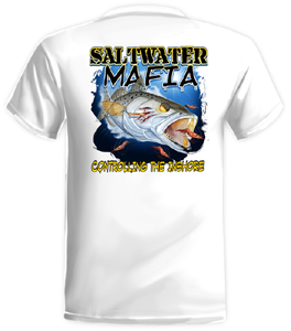 Speck quick dry UV protectant shirts. Features ProtectUV (r) for UPF 50+ Mega Solar protection with WIKZ (r) moisture wicking and ZYPTRON (r) stain release. Double Needle Tailoring. Shirt may have Saltwater Mafia or the Mobster Fish on the front chest. Sizes S-3XL. $2 more for 2 & 3 XL. Design is on shirt back. Unisex.